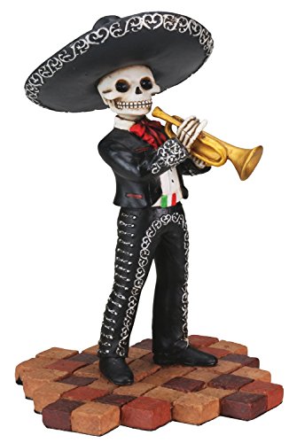 Skeleton Skull Black Mariachi Band Trumpet Statue