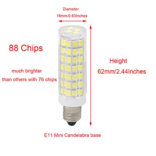 - 6 Watts E11 60-75W traditional bulbs replacement, Daylight white, 88pcs of high brightness 2835 Led chips.