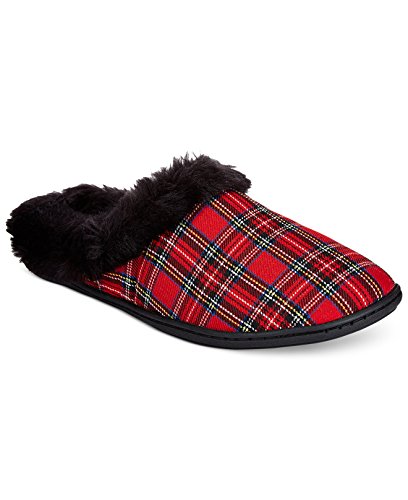 Charter Club Microvelour Clog Memory Foam Slippers, Red Tartan (Small, 5-6)
