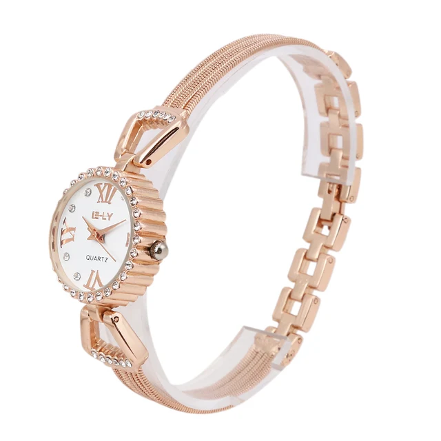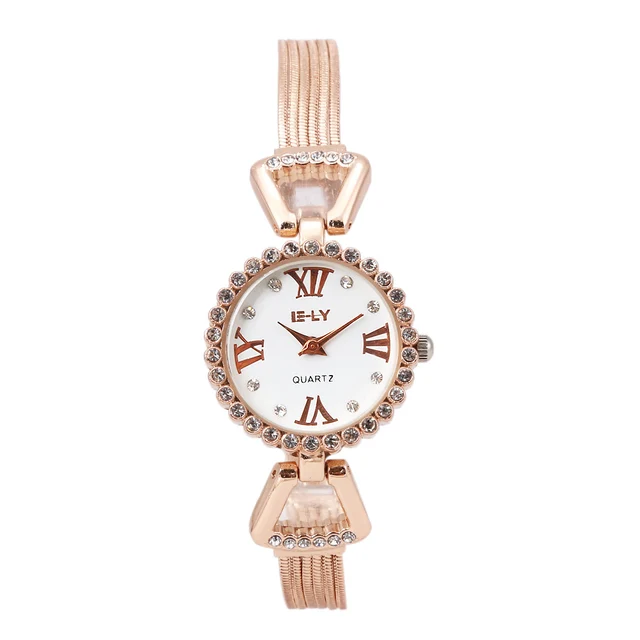 | [해외] 2017 새로운 E-LY 브랜드 로즈 골드 팔찌 시계 여성 여성 크리스탈 드레스 석영 손목 시계 Relogio Feminino ELYC01 |