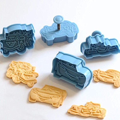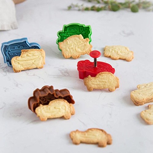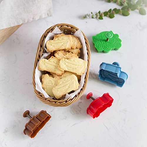 Astra Gourmet 4pcs Spring Cookie Plunger, Pressing Car Shapes 3D Cookie Cutter, Biscuit Pastry Mold, DIY Food Fondant Baking Mold Tools(Color May Vary)
