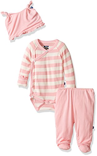 KicKee Pants Girls' Essentials Ruffle Kimono Newborn Git Set with Box, Lotus Stripe, Preemie