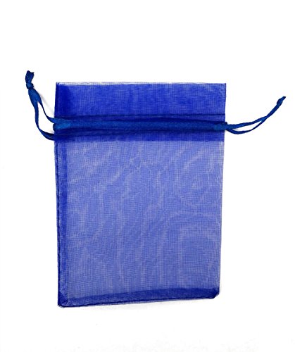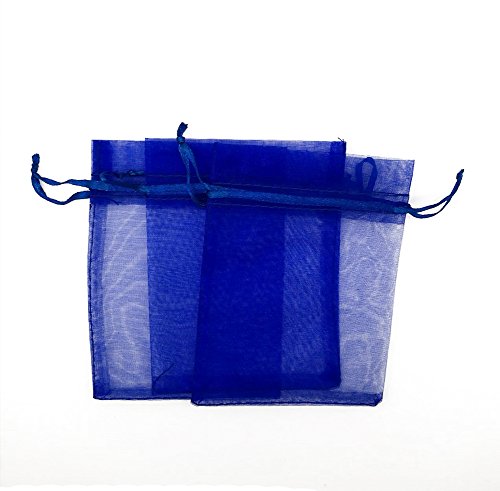 SUNGULF 100Pcs Sheer Organza Drawstring Pouches Wedding Gift Bags 3x4 Inches (Royal Blue)