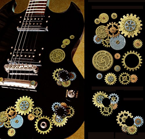Steampunk Gear Set w/ Guitar Volume Tone Knob Inlay Stickers Decals