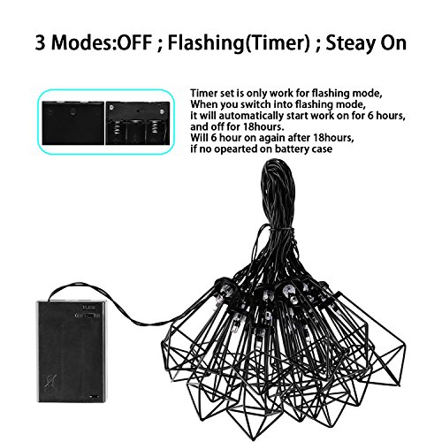 - 2017 Fairy String Lights - Unique Vintage designed,Black hollow diamond shape, Such lighting can make the ambiance in your room romantic and more intimate. Warm white string lights creats a sweet, happy and festive ambience to delight your Christmas, birthday party, wedding, holiday