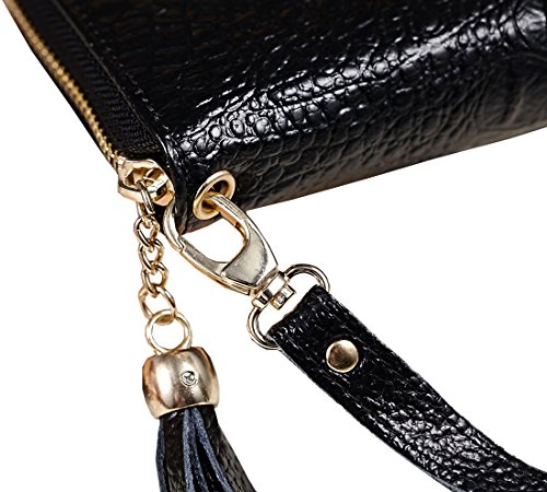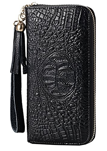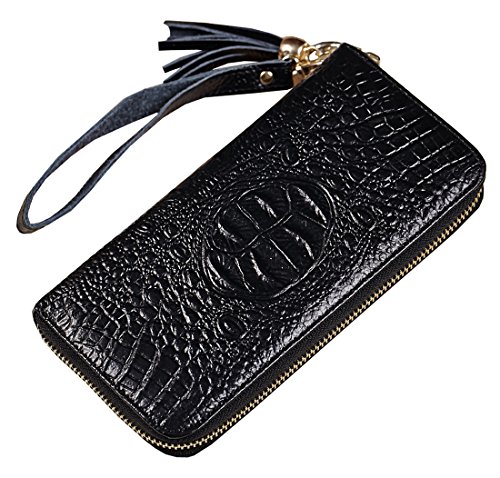 - Title : Heshe Leather Women's New Fahion Crocodile Double Use Purse Case Long Card Holder Wrist Bag Zippered Closure Clutch Wallet for Women (Black)