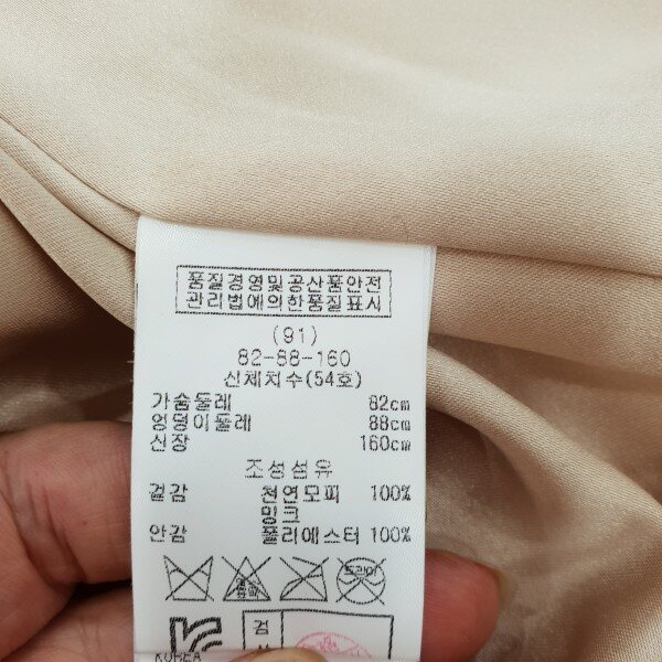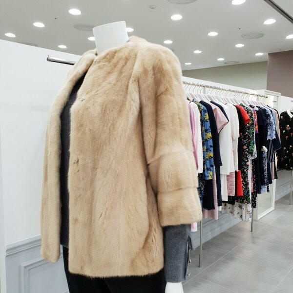 핀란드산 피메일밍크로팔로미노(베이지)컬러는선호도가높은컬러입니다깔끔하고 여성스런핏감으로원피스,바지두루코디가능총장65cm