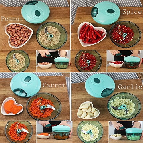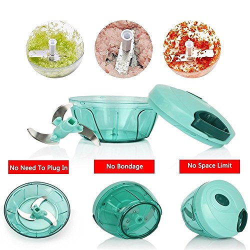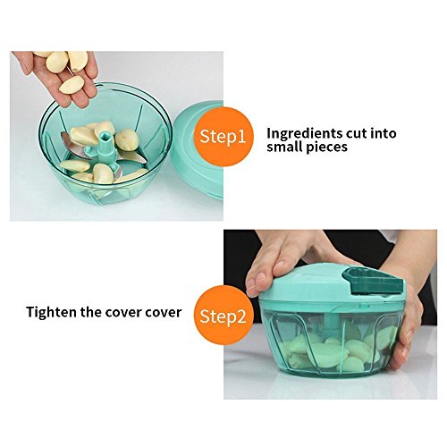 - 【MULTIPURPOSE HANDHOLD CHOPPER】 -- Powerful handheld herb, vegetable, food chopper / mixer / blender. Perfect for slicing and mixing vegetable/fruit salads, cutting various foods for baby, onion chopper (no tears).