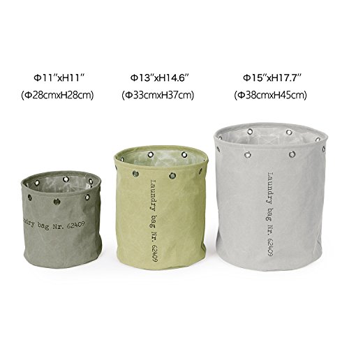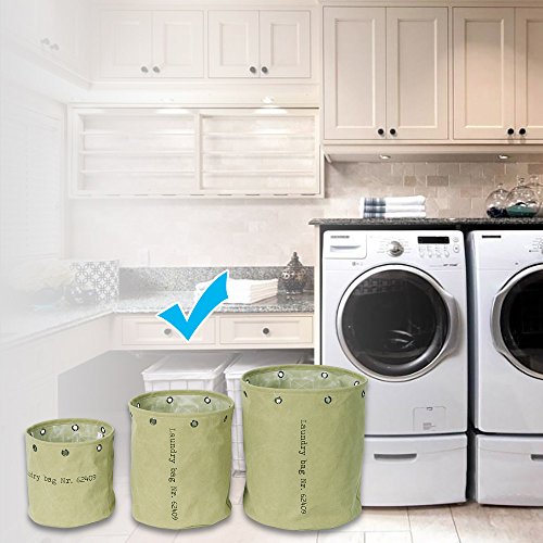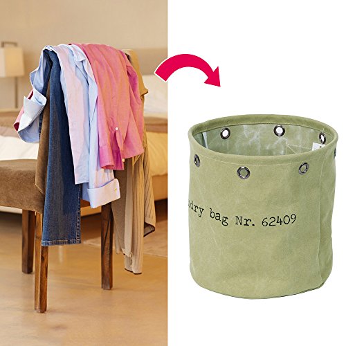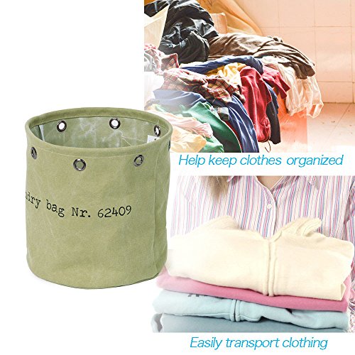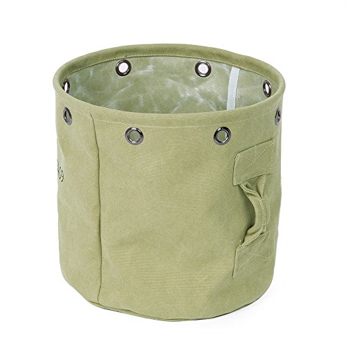 Baibu Cotton Round Laundry Basket/Water Resistance Hampers for Bedroom Canvas Storage Bin for Nursery,Dorm,Closet Clothes Storage Green Small