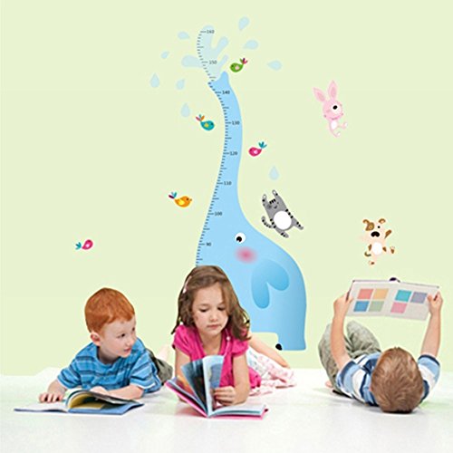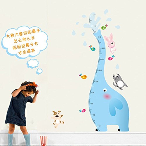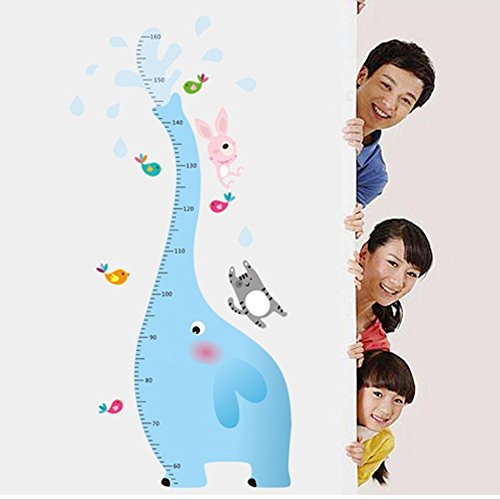 -. Title : Amaonm® Blue Elephant Measurement Height Chart with Cat Dog and Rabbit Birds Wall Decals Sticker for Growth Kids Children Pvc Removable Home Decoration Art Decor for Babys Room Bedroom Door