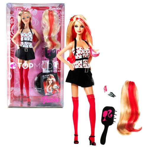 -. Title : マテルYear 2007バービーTop ModelヘアWearシリーズ12インチ人形 – バービーwithスタイリッシュなヘアクリップStreaked着用ホット色、ヘア拡張機能で、Hairbrush and Display Stand