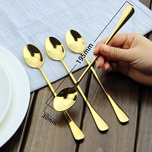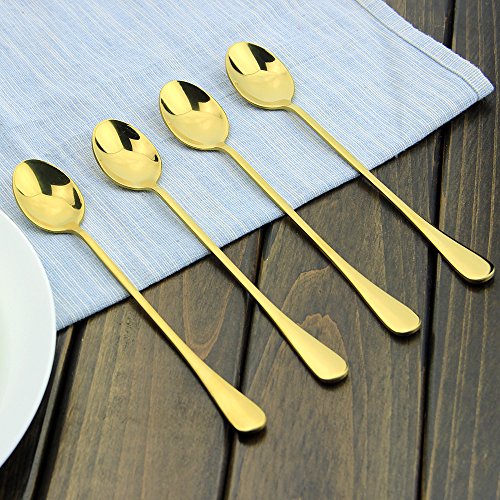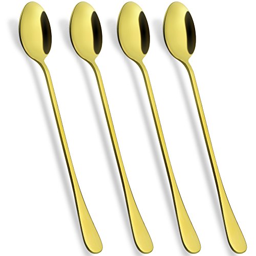 Gold Iced Tea Spoons, AOOSY Long Handle Coffee Ice Cream Cocktail Stirring Spoons, Set of 4 (4 pieces long gold spoon)