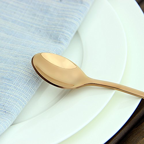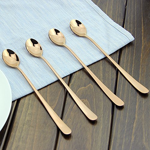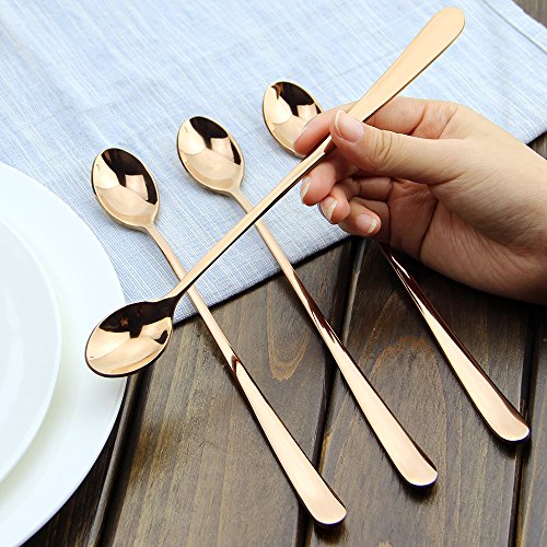 Spoon Long, Rose Gold Stainless Steel Ice Cream Spoon and Iced Tea Spoon, Long Milkshake Spoons & Dessert Spoons Long Handle, Fruit Juice Long Stainless Steel Spoon Set of 4