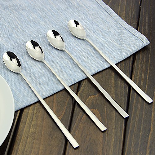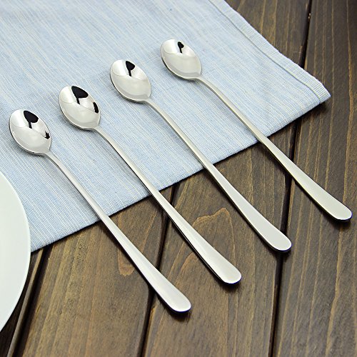 Spoon Set ,8.6 Inches Long Handle Iced Tea Coffee Ice Cream Stainless Steel Cocktail Stirring Dessert Spoons, Set of 4