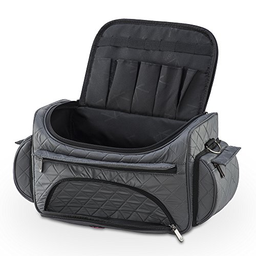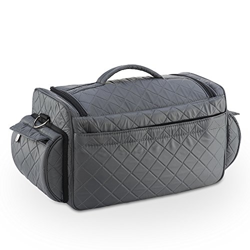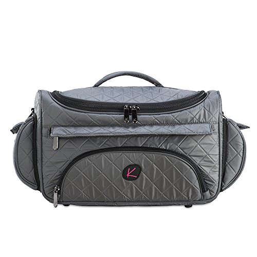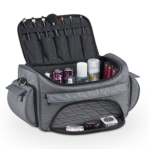KIOTA Beauty Bag - Ideal for Bottles - Makeup Brush Storage Pocket and Outer Pockets - Quilted Finish Shoulder Bag Cosmetic Organizer - Slate Gray
