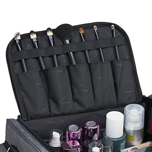 This makeup and cosmetic brush storage bag has one main compartment and 3 side compartments
