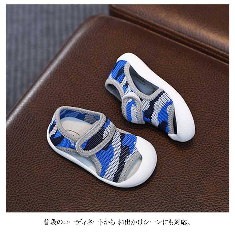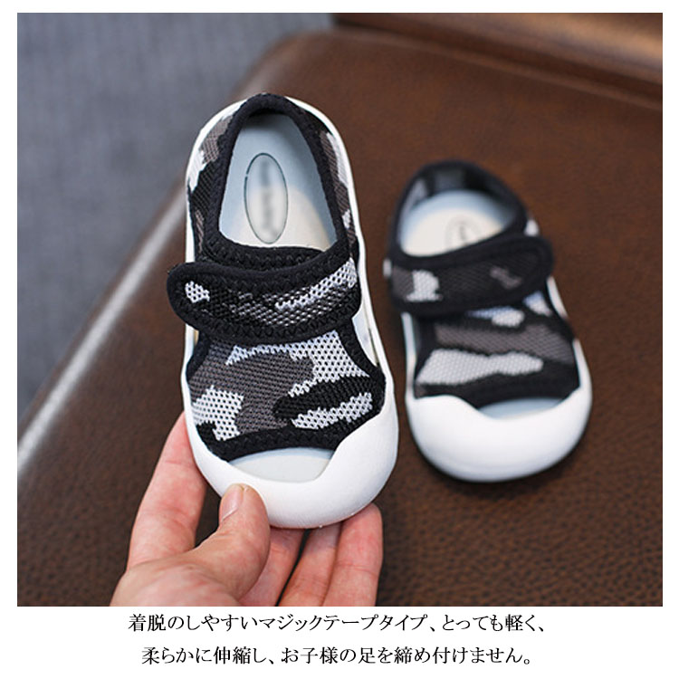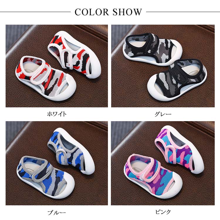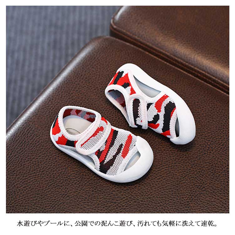 | 全4色&内長11.5cm-14.5cm展開!アッパー部分がメッシュ素材の通気性に優れたシューズ。水遊びやプールに、公園での泥んこ遊び、汚れても気軽に洗えて速乾。着脱のしやすいマジックテープタイプ、とっても軽く、柔らかに伸縮し、お子様の足を締め付けません。普段のコーディネートから お出かけシーンにも対応。 | |