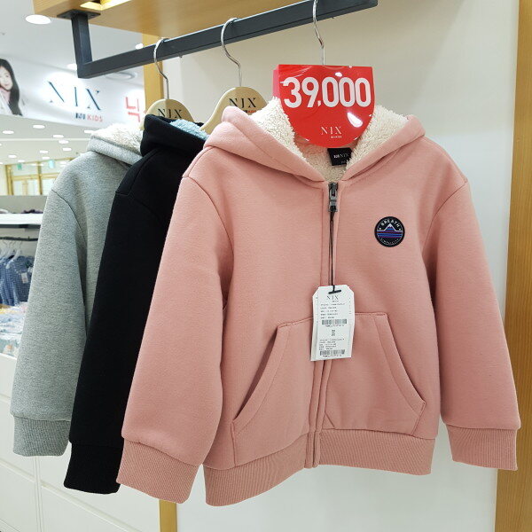 겉에는 다이마루 원단과 안에는 보아털 원단의 본딩으로 후드 집업 점퍼 스타일은 남아,여아 모두 착용 할 수 있는 아이템으로 두꺼운 아우터 안에도 레이어드 할 수 있는 기본핏의 디자인입니다.