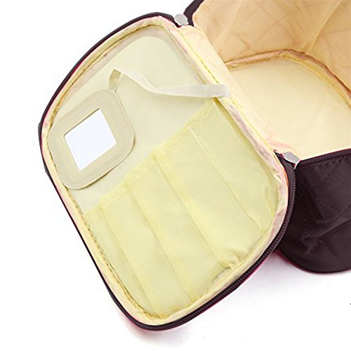 - Structure: Our lovely travel makeup case have a large main compartment,5 makeup brushes space,also have a small mirror as a gift for you.