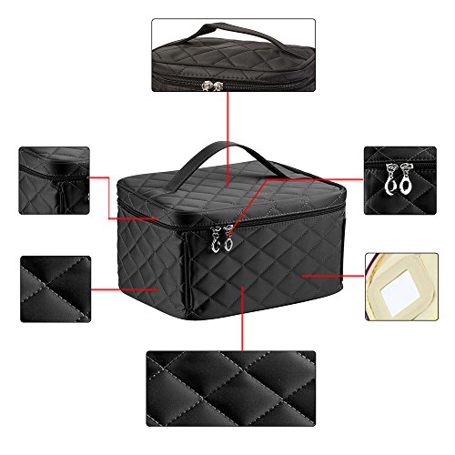 - Material: This makeup cosmetic bag is made of high quality nylon,and with durable handle and double quality zipper.