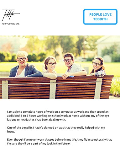 -. Binding : Health and Beauty -. Brand : TEDDITH -. Feature : PROTECT YOUR EYES - Teddith computer glasses block harmful blue light. Anti-Reflective + Anti-Glare lens coating prevents insomnia and macular degeneration. / LOOK COOLER - Most computer glasses and blue blocker glasses have yellow tint lens! They're clunky, unstylish and make you look silly. You can rock your Teddith computer glasses and still be super stylish! / SLEEP BETTER - Do you have trouble sleeping? You sleep better when you wear the Teddith computer screen reader glasses. / ACETATE FRAMES - Environmentally-friendly alternative to petroleum-based plastics. Strong, lightweight and flexible, can be shaped to your face for a perfect fit and be readjusted. / IMPROVE PERFORMANCE AND PRODUCTIVITY - Extended exposure to blue light rays may cause fatigue and stress. Filtering out the High Energy Blue Light allows you to focus on your game or task at hand. -. IsAdultProduct : 0 -. Label : Teddith -. Manufacturer : Teddith -. MPN : BBC03 -. PackageQuantity : 1 -. PartNumber : BBC03 -. ProductGroup : Health and Beauty -. ProductTypeName : HEALTH_PERSONAL_CARE -. Publisher : Teddith -. Studio : Teddith -. Title : Teddith Blue Blocker Computer Glasses Anti Glare Anti Blue Ray Scratch Resistant