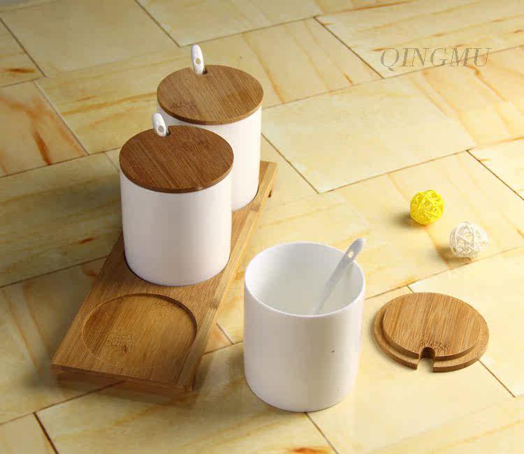 2、一套包含3只调味罐+木底托+3只陶瓷小勺