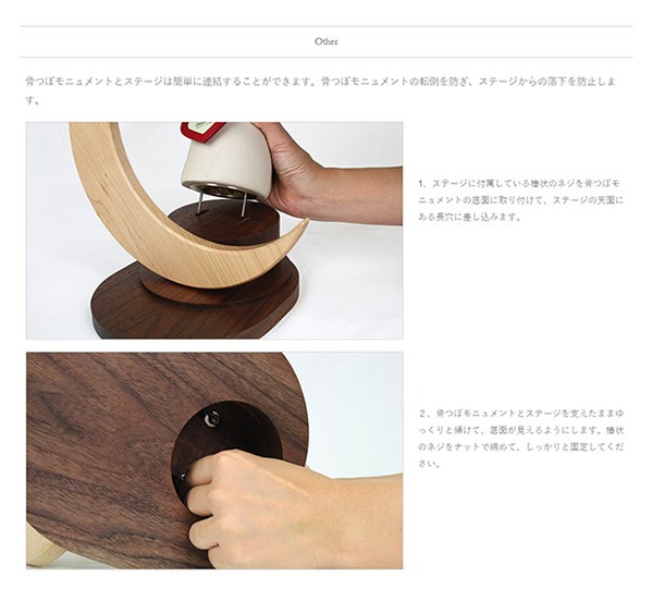 ※ステージと別売りの骨つぼモニュメントは、連結して固定することができます。