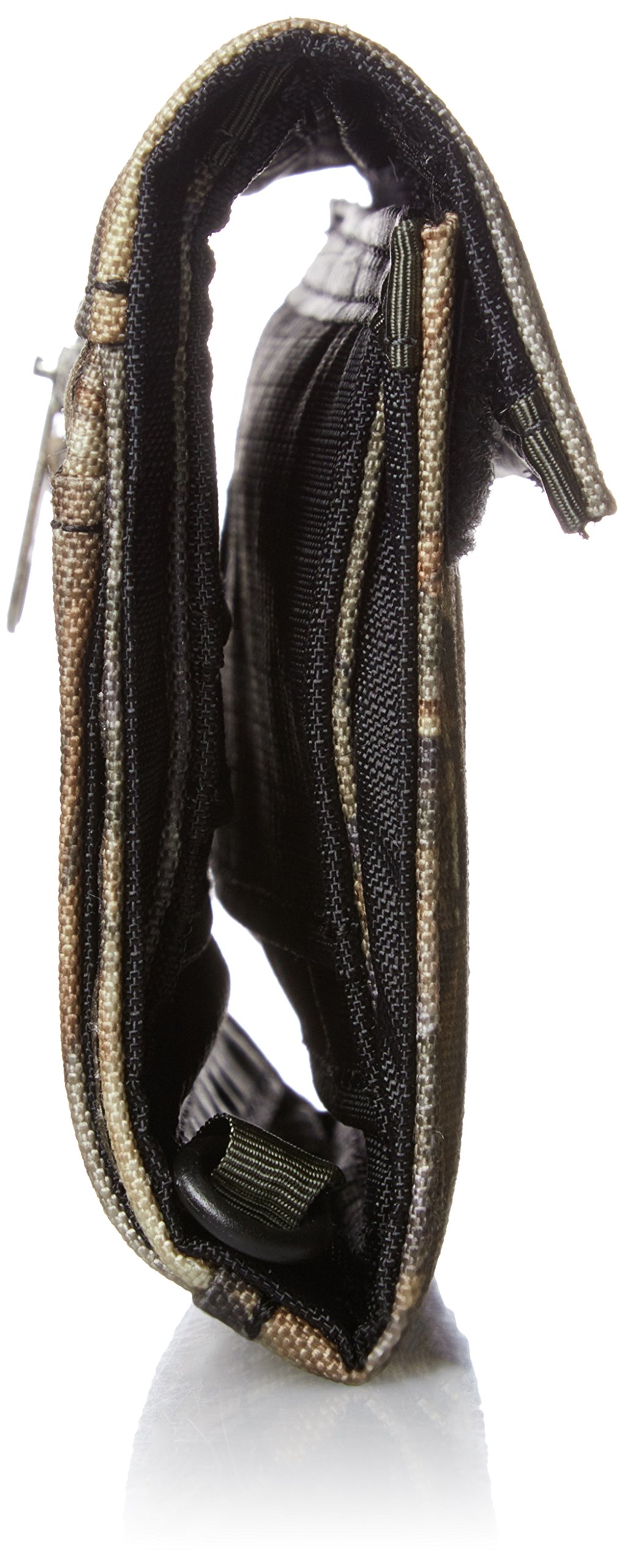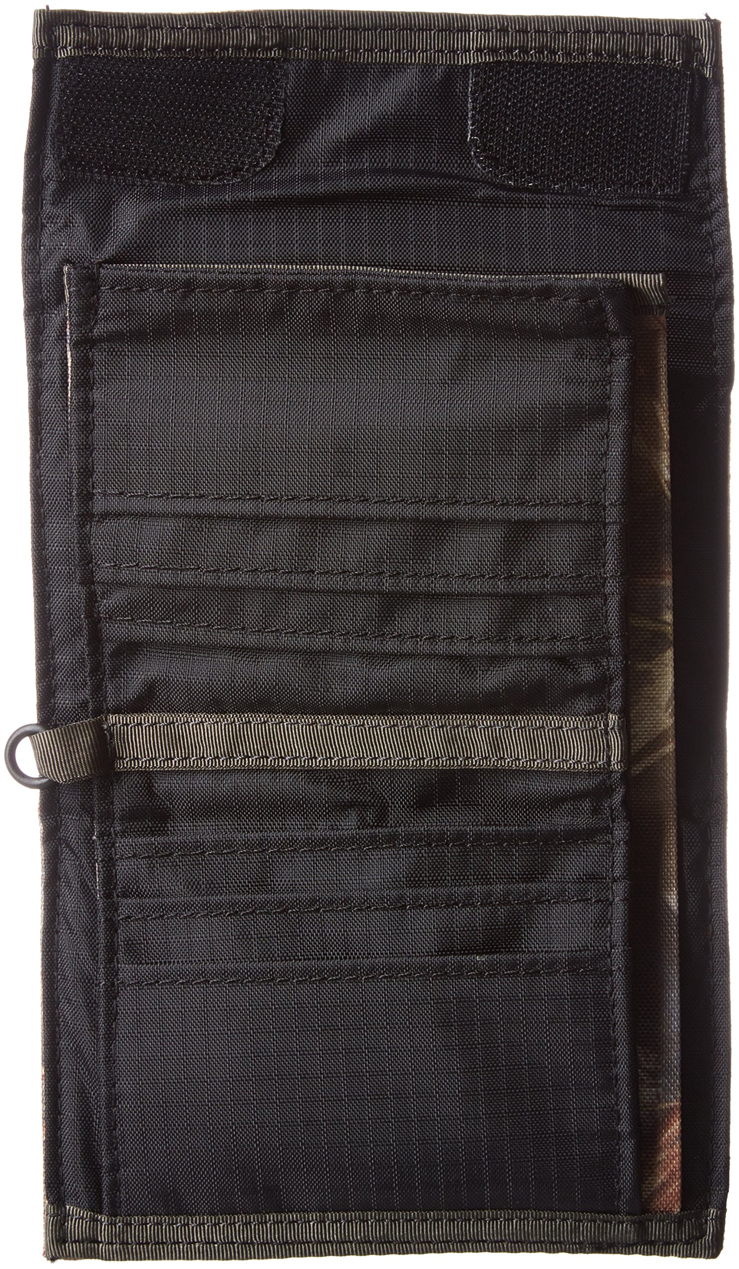 It is a Velcro opening and closing wallet with plenty of sleeves convenient for storing cards such as ID.