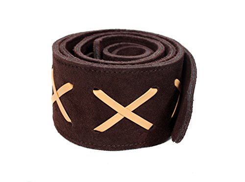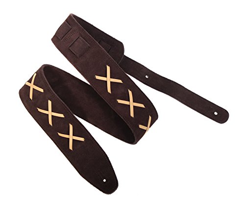 920D 2 1/2" Suede Leather with Cross Stitch Electric Guitar Strap, Brown/Tan