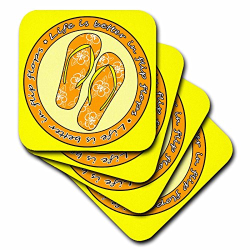 3dRose Life Is Better in Flip Flops - Orange and Yellow - Soft Coasters, Set of 4 (cst_77543_1)