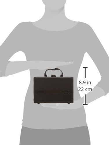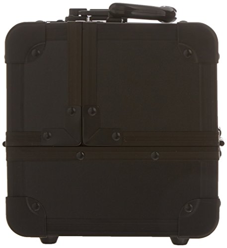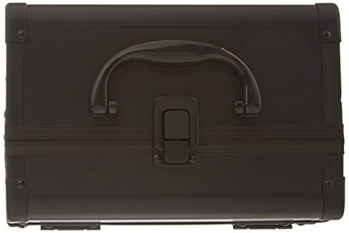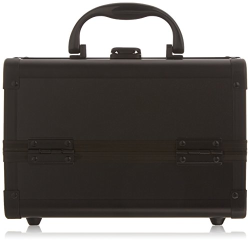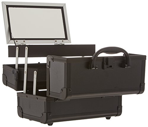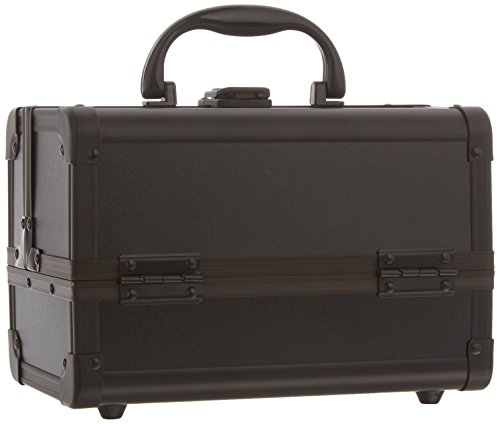 JustCase Cosmetic Makeup Train Case with Mirror and Easy Clean Extendable Trays, Black Smooth, 8 Count
