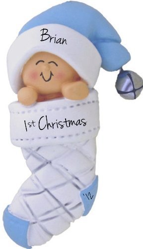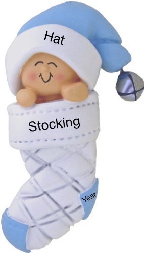 Baby's First Xmas Blue Boy in Stocking Xmas Tree Ornament - Engraving or Personalization Not Included