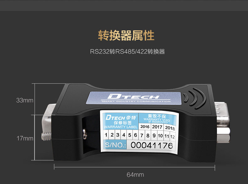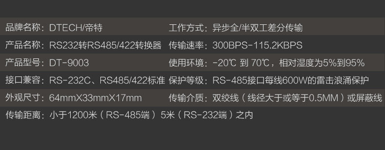 帝特 232转485转换器无源防浪涌型静电型 RS232转RS485/RS422