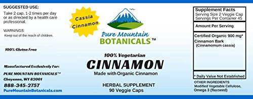 Full Spectrum Cinnamon Capsules. 90 Kosher Veggie Caps. Now made with 450mg of Organic Cassia Cinnamon Bark Powder