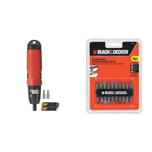 Black & Decker AS6NG Alkaline Cordless Screwdriver with 71-081 Double Ended Screwdriving Bit Set, 10-Piece