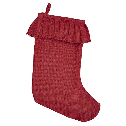 Red Burlap Ruffled Trim Christmas Stocking, 11x15 Inches, Holiday Decoration