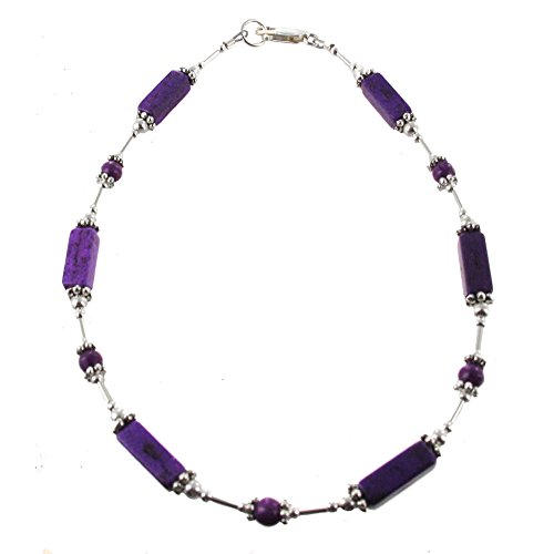 -. Title : Womens Purple Turquoise Magnesite & SS Ladies Beaded Anklet with Daisies