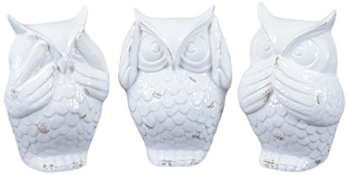 Urban Trends Ceramic Owl No Evil, Assortment of Three, Gloss White