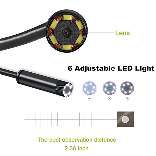 WATERPROOF&DUSTPROOF - The endoscope made with waterproof camera and Snake Soft Wire, which can be used almost everywhere. You can observe under water, gaps, holes and hard-to-reach or hard-to-see area. Meanwhile, it has an integrated 6 adjustable led light for dark area working assistance.