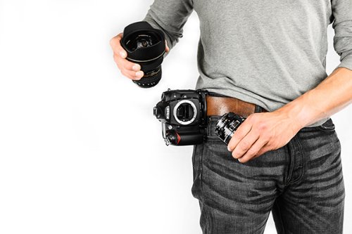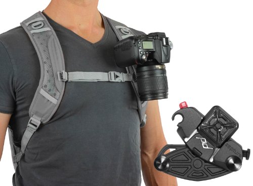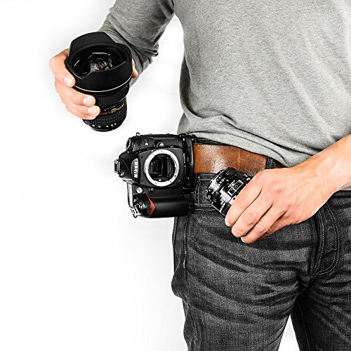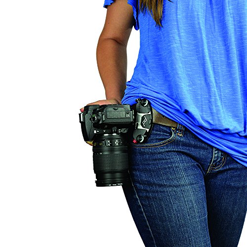 -. Feature : Holds camera during any physical activity while providing instant access for picture taking / Attaches to any strap or belt up to 3 Inch (7.6 cm) wide and 0.5 Inch (1.3 cm) thick / Works with DSLR, compact and point-and-shoot cameras / Quick-release lock withstands over 200 lbs. of force / Allows for fast & easy lens changes
