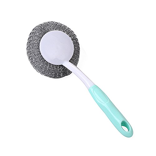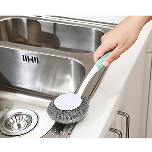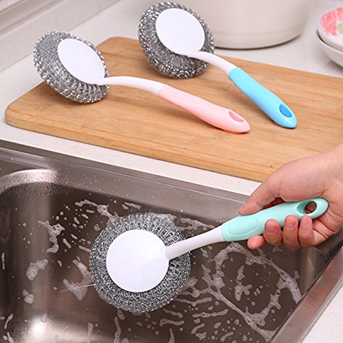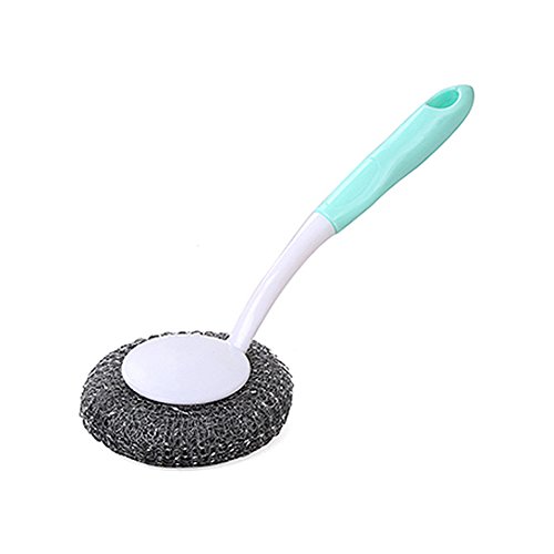 TLHOME Dishwashing Brush Long Handle Steel Ball Steel Ball Kitchen Cleaning Brush Steel Wire Pot Brush