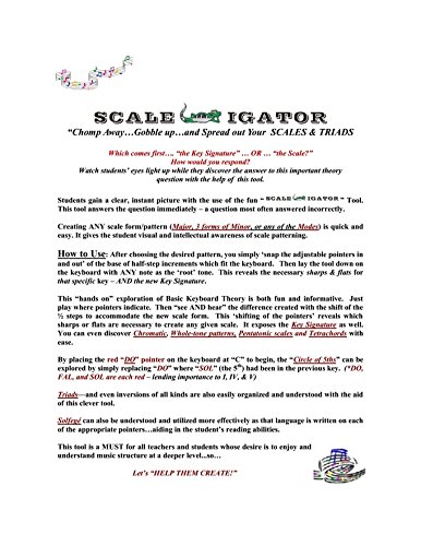 -. Brand : SCALE IGATOR -. EAN : 0853172006345 -. Feature : A great MANIPULATIVE tool for learning piano and keyboard. / Easy and fun to learn / A must for the students who desire to understand the music structure / Tweak the children's interest in learning piano / It is helpful to their comprehension of the construction of scales and triads. -. PackageQuantity : 1 -. ProductGroup : Musical Instruments -. ProductTypeName : INSTRUMENT_PARTS_AND_ACCESSORIES -. Title : SCALE IGATOR Piano & Keyboard Learning Tool Music Scale Aid -. UPC : 853172006345