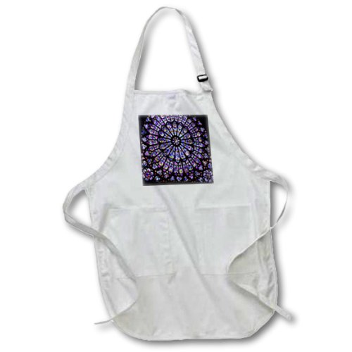 3dRose apr_50227_1 Notre Dame Cathedral Stained Glass-Full Length White Apron with Pockets, 22 by 30-Inch