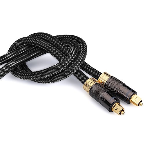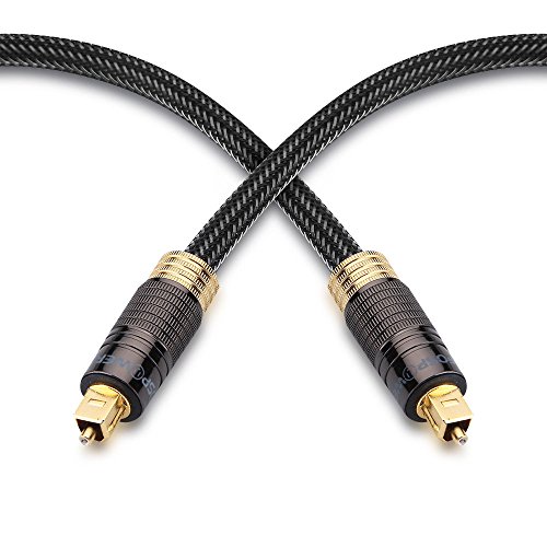 FosPower (6 Feet) 24K Gold Plated Toslink Digital Optical Audio Cable (S/PDIF) - Metal Connectors & Braided Nylon Jacket