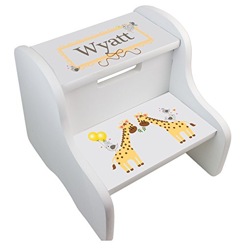 -. Title : Personalized Giraffe White Two Step Stool