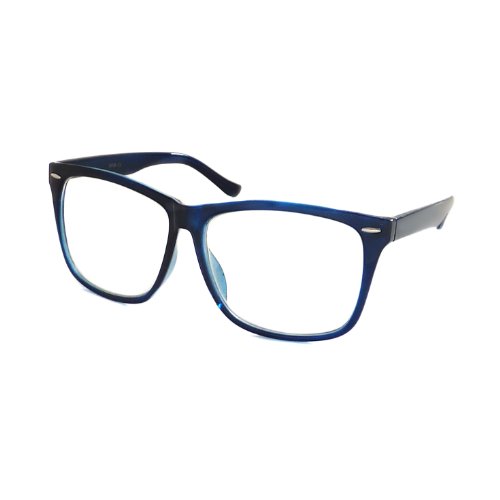 NERD Geek 50s Style Oversize Trendy Frame Unisex Clear Lens Eye Glasses BLUE