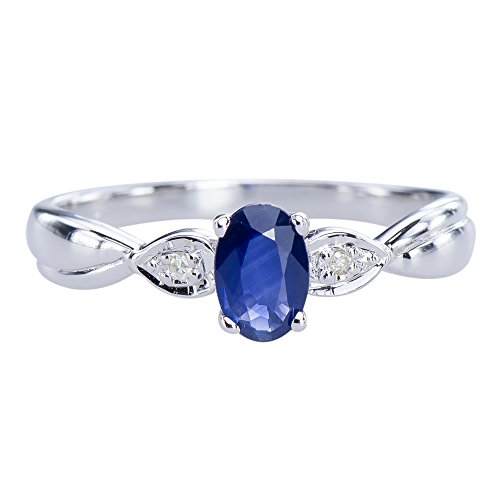 -. Title : Graceful Womens Natural Sapphire Gemstone 9K White Gold Diamond Promise Ring