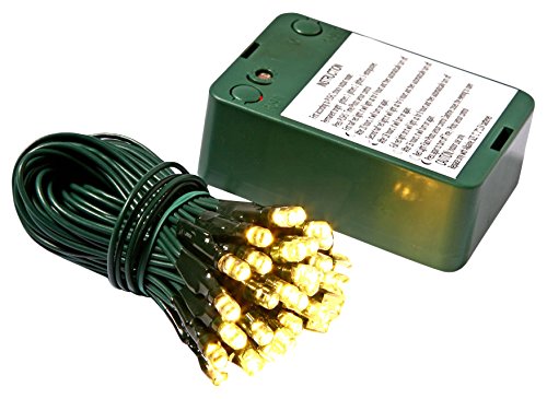 Vickerman 35 Count Battery Operated Wide-Angle LED Light Set with Timer and Sensor, Green Wire, Warm White