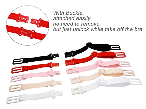-. Feature : Zwei Arten von Paket für wählen - 1) multi Farbe: 5 Stück BH-Träger Halter (schwarz, weiß, beige, rosa, rot für jeden); 2) Clear & Unsichtbar: 6pcs klar BH-Träger Halter. / Anti-Rutsch-BH-Bügel-Halter mit Schnalle - einfach an den BH-Träger befestigt, keine Notwendigkeit, es zu entfernen, sondern nur die Schnalle zu entsperren, während die BH auszuziehen. / Spezielle Design Metallhaken mit Kunststoff-Abdeckung - schonender für die Haut als einfache Metallhaken . Leicht zu addieren und von BH-Träger zu entfernen. Geeignet auf 1 / 1,2 / 1,5 / 1,8 cm breiten BH Schultergurt. / Länge verstellbar - 18 cm bis 21cm. Elastisch und dehnbar. / Anti Rutsch Elastische BH Bügel-Halter sind schmal genug und flach - was bedeutet, dass es keine unschönen Beulen auf meine Bluse sind.