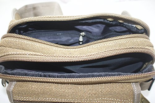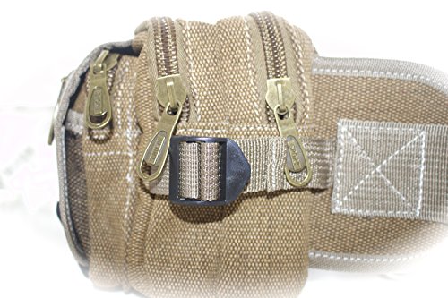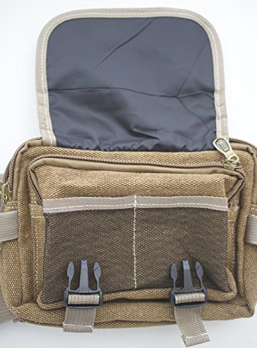 Product Description Durable canvas multifunction waist pack has large volume, multiple compartments to keep your items organised. It is made from high quality durable canvas with metal zippers with sturdy stitching, hooks and buckles. Waist belt is adjustable which distributes the weight across the body for extra comfort. 0